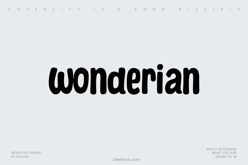 Wonderian is a fun and cool display font designed specifically for playful and creative projects. Whether you use it for cartoon-related designs, children’s games, posters, logos, magazines, or book covers, this cheerful typeface brings a bold and charming character to your designs. Perfect for anyone seeking a modern, cute, and vibrant font that adds a delightful touch to typographic creations. Explore this adorable display typeface today!