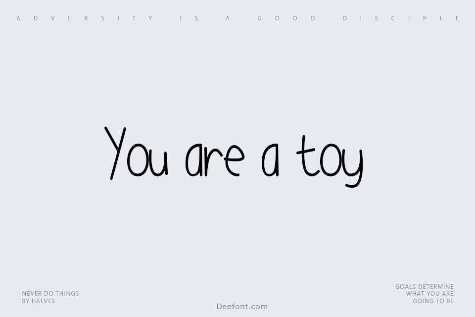 You are a TOY is a whimsical handwritten script font designed by Chequered Ink that brings playful personality to your creative projects. With its cheerful, toy-like aesthetic and smooth letterforms, this versatile typeface is perfect for greeting cards, children’s illustrations, and casual branding. The font combines friendly charm with readable elegance, making it ideal for designs that need a touch of lighthearted fun and creative expression.