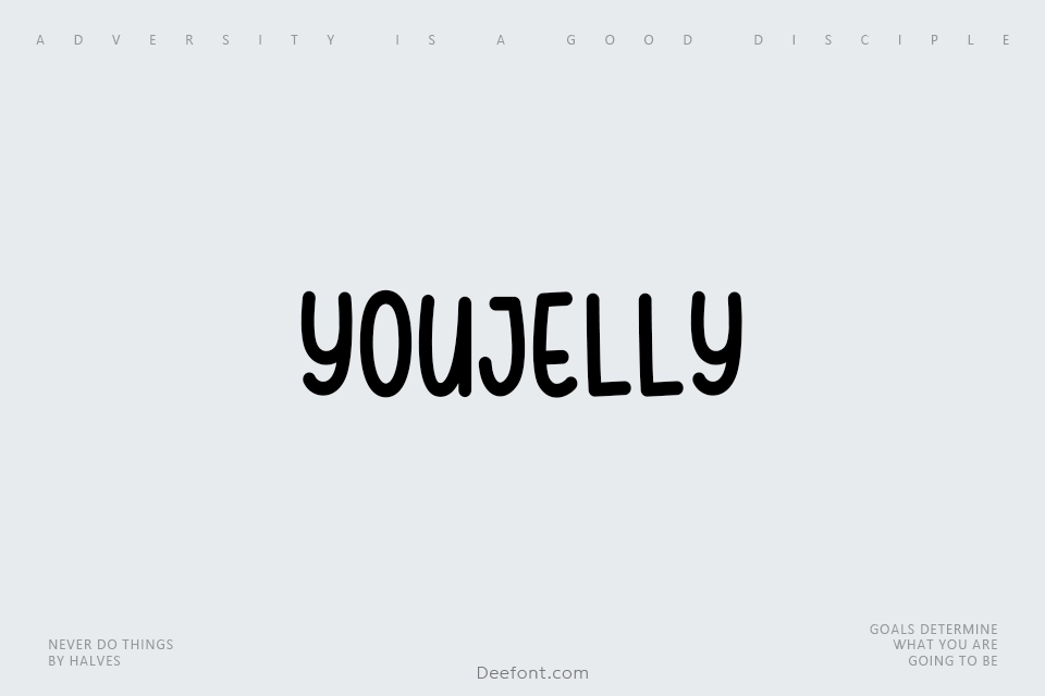The Youjelly font is a playful handwritten script designed to inject joy and vibrance into creative projects. Its smooth and whimsical letterforms make it perfect for children’s books, branding, social media posts, and anything needing a fun, lighthearted touch. Blending contemporary handwriting flair with reliable readability, Youjelly brings a friendly and approachable aesthetic ideal for standout visual communications.
