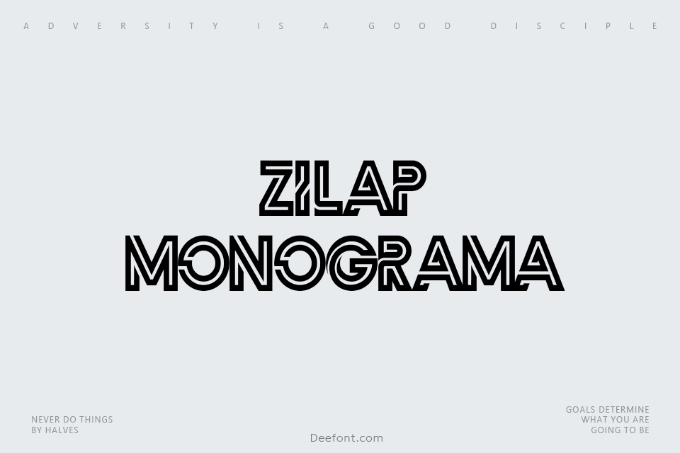 Zilap Monograma is a contemporary geometric monogram font designed specifically for creating distinctive letter-based logos and branding elements. Featuring clean lines and bold, sharp character forms, this decorative typeface excels in logo design, business cards, and product packaging. Originally conceptualized by Zilap Studio with assembly and foundry by LJ Design Studios, the font combines minimalist aesthetics with professional versatility, making it ideal for fashion, beauty, and lifestyle brands seeking modern visual identity solutions.