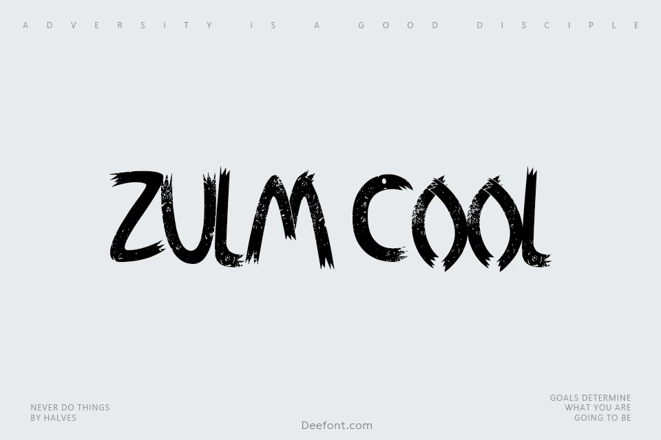 Zulm Cool Font is a bold and expressive display font designed by LJ Design Studios. Featuring a scratchy, hand-drawn style, it adds a dynamic and edgy touch to headlines, posters, and creative projects. Ideal for eye-catching designs, Zulm Cool stands out with its unique character and energetic strokes.